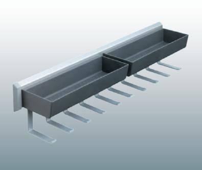 W skład zestawu wchodzą 2 kuwetki, 10 haczyków, 2 dystanse 15 mm oraz prowadnica 3/4 wysuwu.