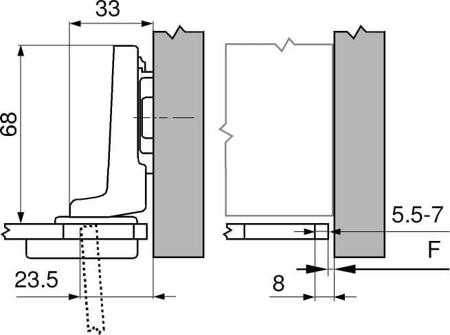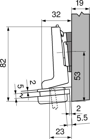 - CLIP TOP BLUMOTION zawias 110°, nakładany, ze sprężyną, puszka na wkręty dwa kolory 71B3550