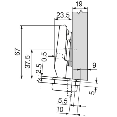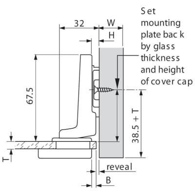 CLIP TOP zawias do drzwi szklanych 94°, drzwi wpuszczane, ze sprężyną, puszka na wkręty 75T4300