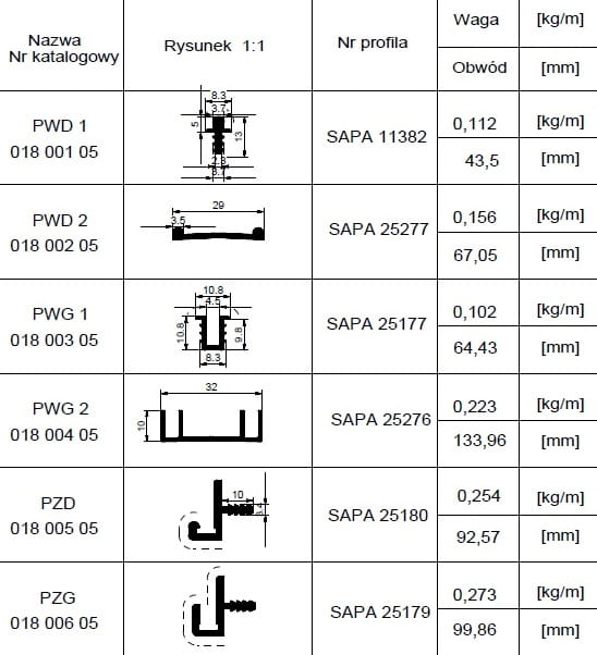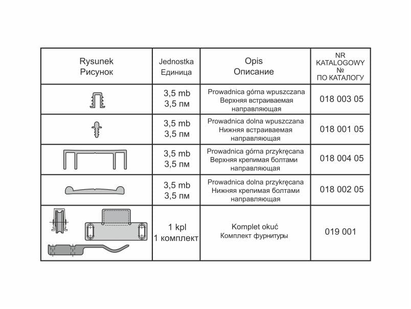 Prowadnica dolna wpuszczana 018 001 05 018 001 05