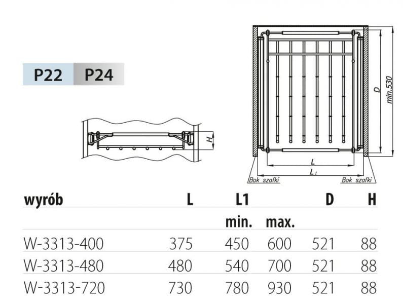 - Prowadnice MOVENTO TIP-ON BLUMOTION 40 kg lub 60 kg MOVENTO TIP-ON BLUMOTION