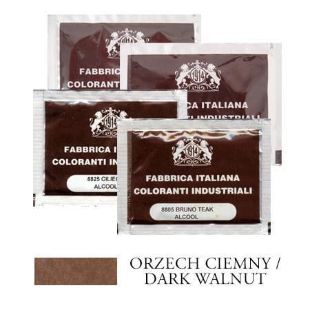 Jedna saszetka zawiera 8 g proszku. Zawartość saszetki rozpuszczamy w spirytusie w proporcji : 1 saszetka na 250 - 500 ml spirytusu. Nasycenie koloru zależne od ilości użytego spirytusu.Po całkowitym rozpuszczeniu bejcy rozprowadzamy pędzlem,gąbką lub przez zanurzenie.Pozostawiamy do całkowitego wyschnięcia.