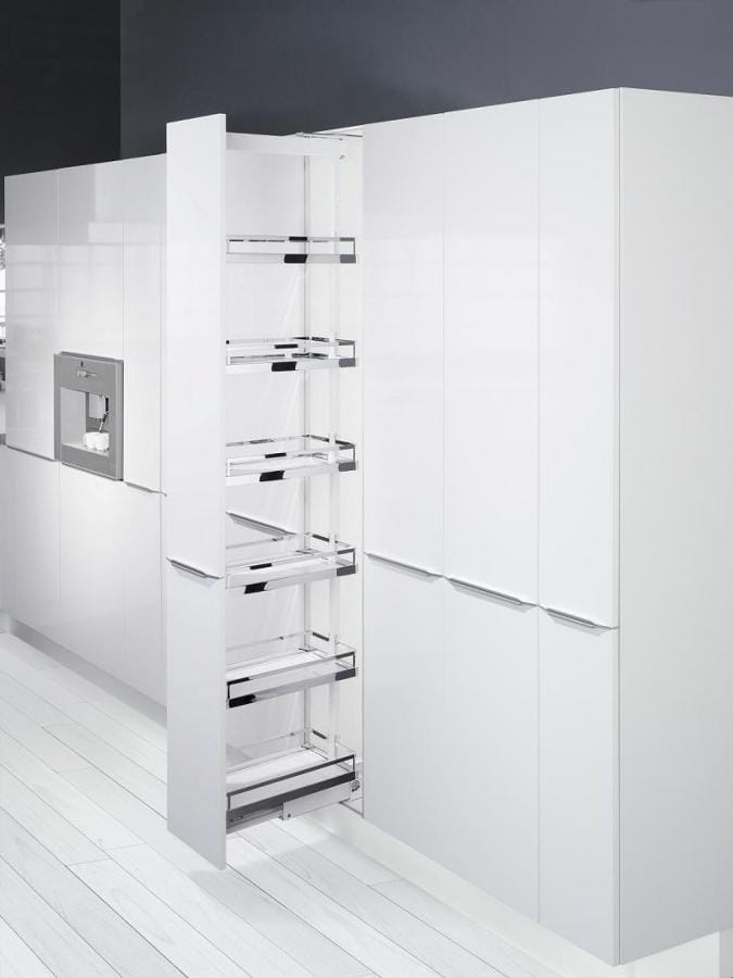 | Wyciąg przeznaczony jest do szafki typu cargo o szerokości frontu do wyboru: 450 mm, 500 mm lub 600 mm i wysokości ramy w przedziale 1200-1600 mm. Komplet dostępny jest z koszami w linii ARENA Style. Relingi wykonane są z chromowanych płaskich elementów. Drewniane dno koszy w kolorze białym pokryte jest antypoślizgową przezroczystą powłoką. | |