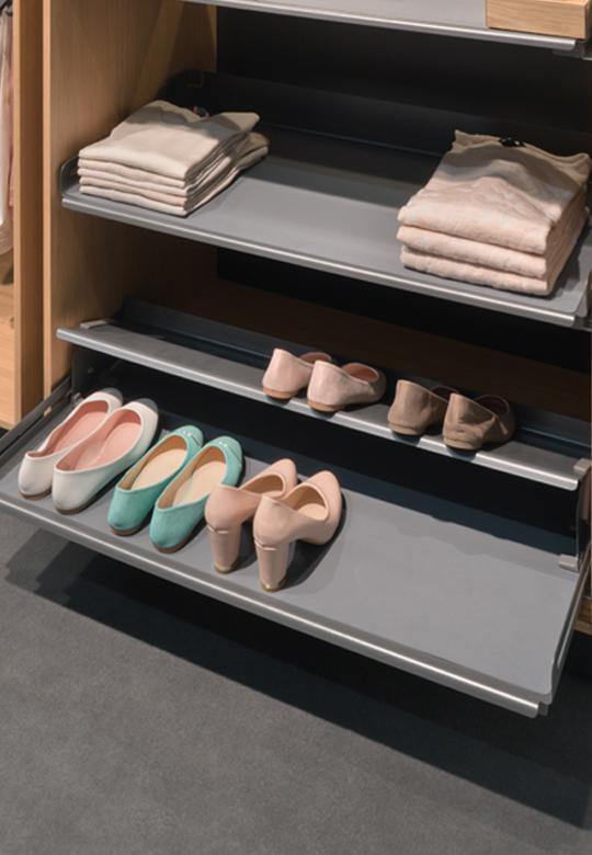 Nadstawiana półka Extendo to nieograniczony zakres zastosowań od kuchni poprzez garderobę I biuro. Innowacyjna budowa i możliwość ustawienia jej pod trzema różnymi kątami pozwoli na dodatkowe wykorzystanie każdej wolnej przestrzeni między półkami. W szafie kuchennej służyć będzie jako dodatkowa półeczka na słoiczki z przyprawami a po zmianie położenia posłużyć może jako półka na książkę kucharską czy nawet jako podpórka na pokrywki. Ustawiona na półce Extendo w szafce podblatowej idealna będzie jako dodatkowa półka na filiżanki, kubki, talerzyki czy ręczniki kuchenne. W biurze umieścimy na niej broszury, ulotki i drobne materiały biurowe itp. Natomiast w garderobie wykorzystamy ją jako półka na buty, na akcesoria do konserwacji obuwia lub jako dodatkową półkę na apaszki, paski czy inne dodatki.