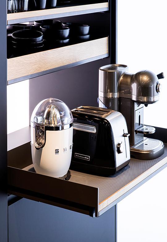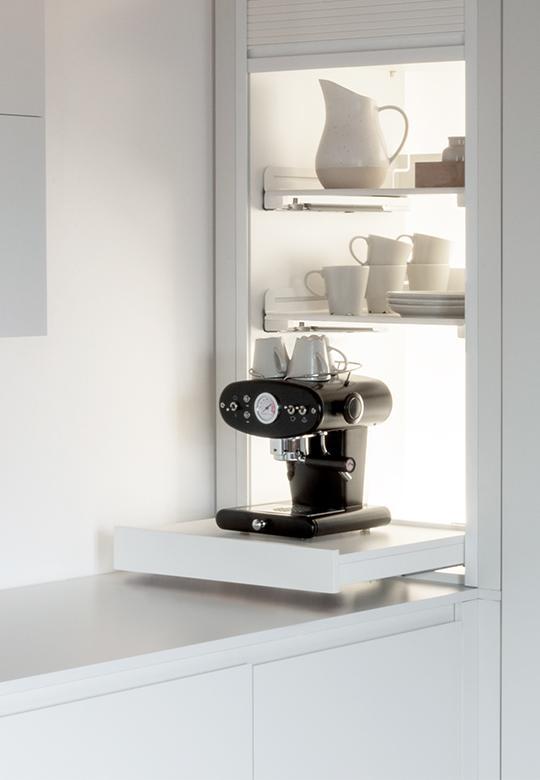 Click Stop znajduje zastosowanie przy wysuwanej półce Extendo z przeznaczeniem na ekspres do kawy, doskonale zablokuje półkę w domowym biurze tworząc mini biurko, szybko zorganizuje stół do prania czy stół prezentacyjny, wysuniętą półkę szybko przekształci w dodatkowy stół roboczy a nawet przewijak dla niemowląt.
