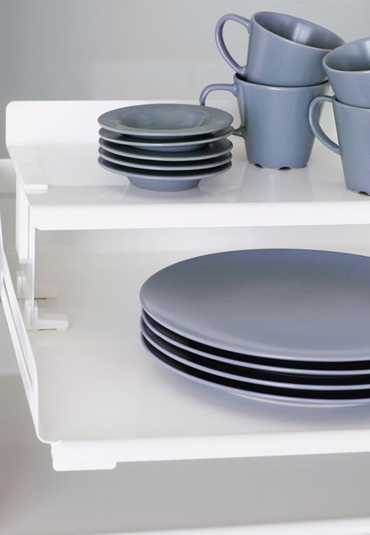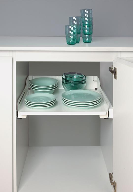 Mamy do zaoferowania półkę Extendo Libell jako świetną alternatywę dla tradycyjnych na stało zamontowanych półek i klasycznych szuflad. Nasze półki nadają się do wnętrza kuchennych szafek wysokich i niskich, montowanych po kilka półek w jednej przestrzeni, ale również jako pojedyncza półka, rewelacyjnie dopasowując się do każdej kuchennej spiżarni czy skrytki, szafy garderobianej i gospodarczej. Półki Extendo pasują do standardowych drzwi skrzydłowych montowanych na zwykłych zawiasach.