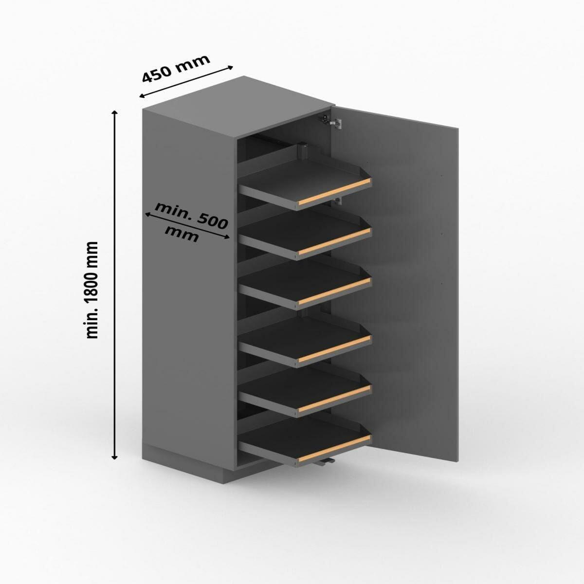 - Wysokość światła szafki: min. 1800 mm