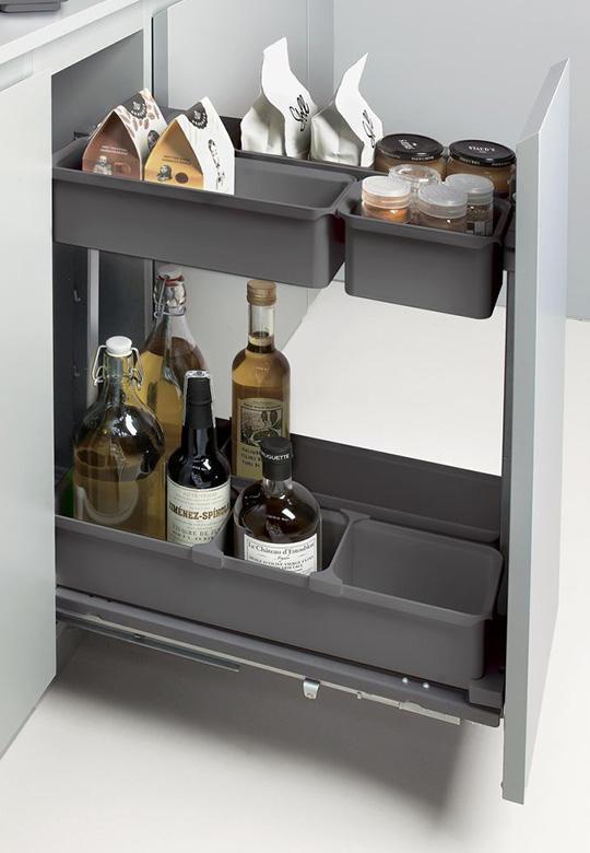 Junior YouboXx Set 3+4 to kompletny system do szafki podblatowej o szerokości frontu 300 mm. Tradycyjne kosze zastąpiono nowoczesnym pojemnikami z tworzywa o różnych pojemnościach. Dzięki różnorodności pojemników, system jest praktyczny, a zarazem bardzo ciekawy wizualnie. Prowadnice montowane są do dna szafki, co zapewnia stabilność i wytrzymałość konstrukcji, dodatkowo za pomocą dwóch mocowań, rama mocowana jest do frontu szafki. Wyciąg wyposażony jest w system cichego domykania.