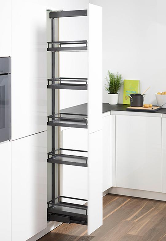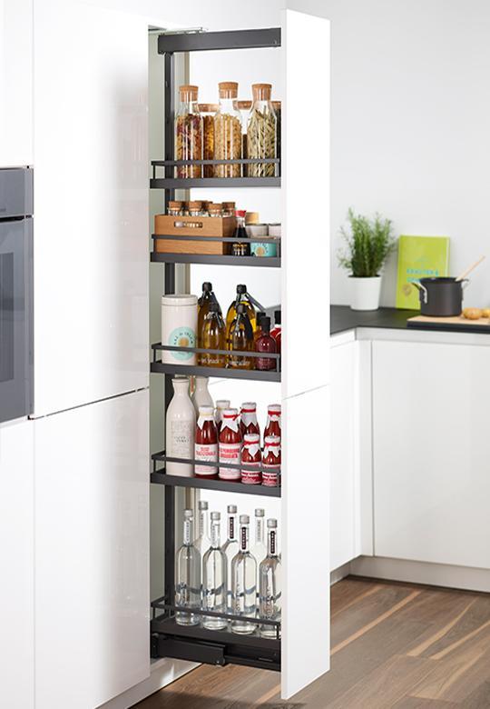 Do swobodnego wysunięcia carga, należy stosować standardowe uchwyty meblowe. W przypadku tej szerokości carga nie ma możliwości, zastosowania dodatkowych systemów wspomagających otwarcie szafki bezuchwytowo.