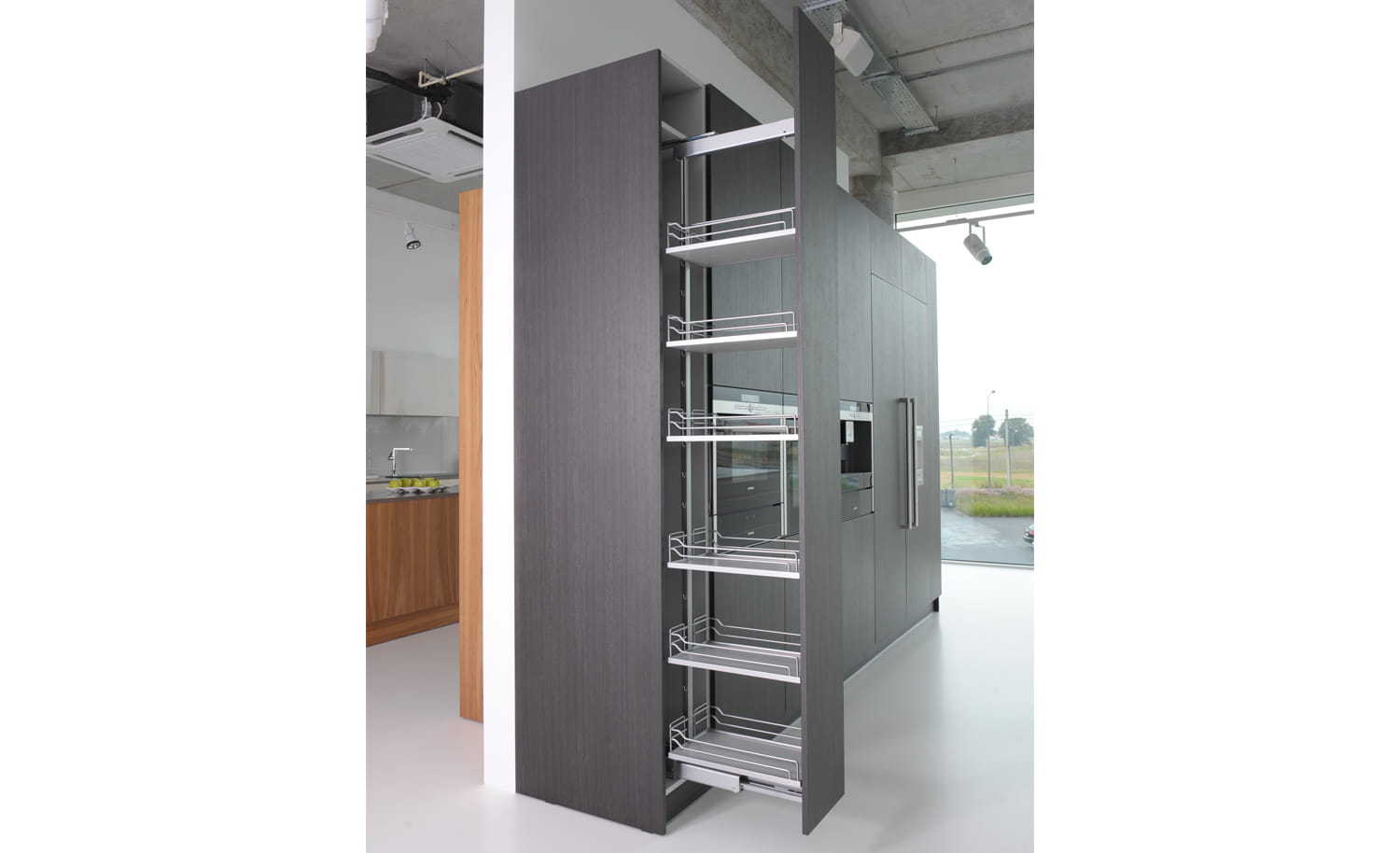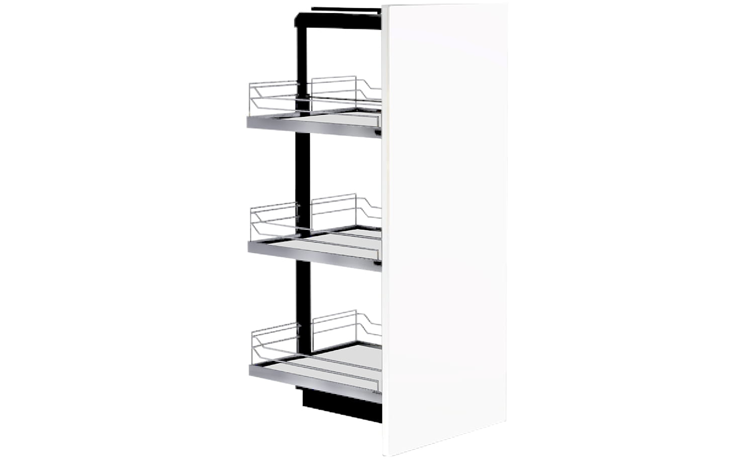 Wyciąg wysoki do szafki typu cargo o szerokości frontu 450 mm i wysokości ramy w przedziale 900-1200 mm. W cargo zastosowano prowadnicę z pełnym wysuwem.