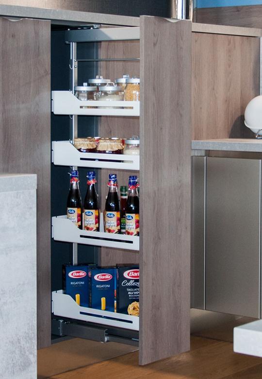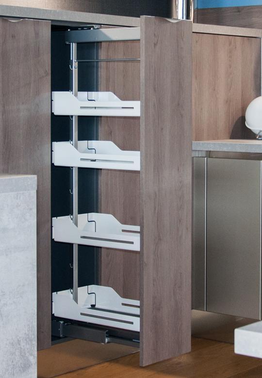 Do swobodnego wysunięcia carga należy stosować standardowe uchwyty meblowe. W przypadku tej szerokości carga nie ma możliwości zastosowania dodatkowych systemów wspomagających otwarcie szafki bezuchwytowo.