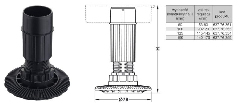 regulacja wysokości: za pomocą narzędzia regulacyjnego AXILO 78