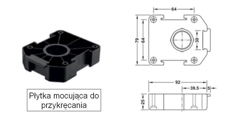 montaż: do mocowania na wcisk w płytce mocującej