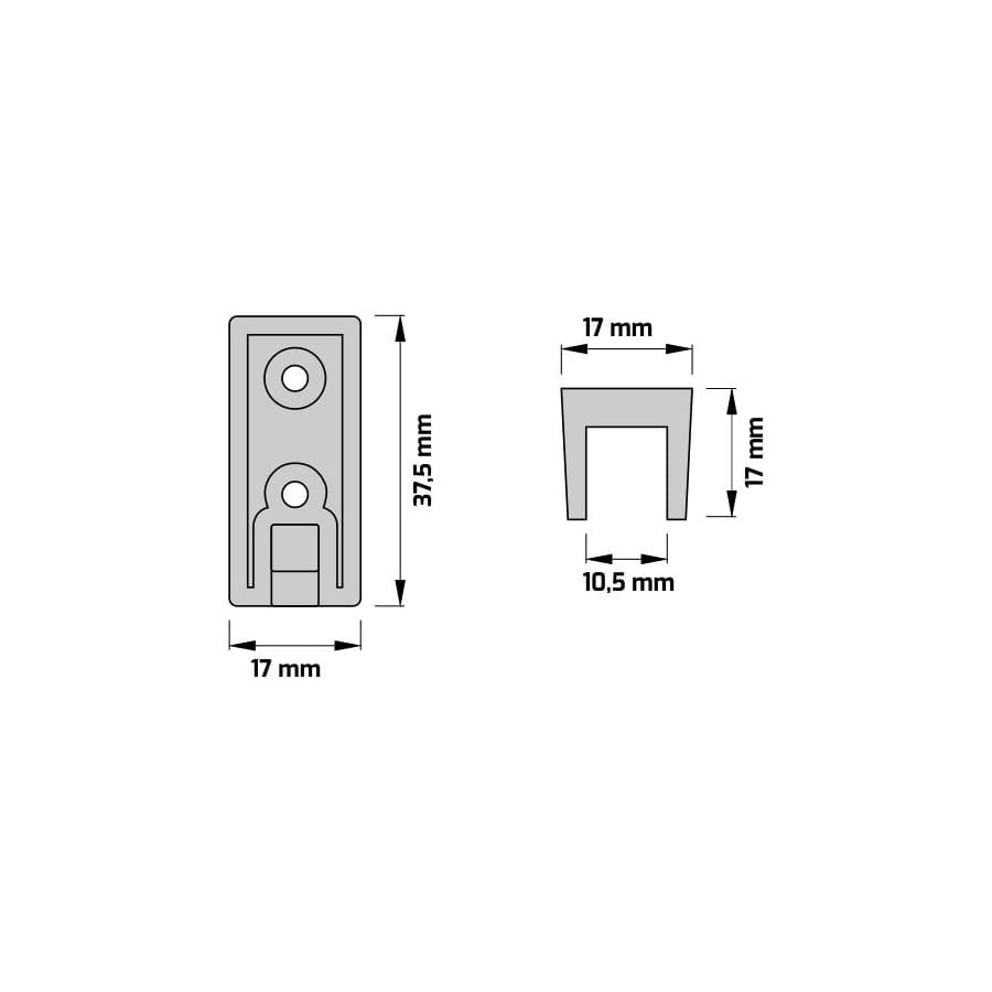 Uchwyty wykonane są z mocnego materiału ABS. Przymocowane do wewnętrznej płyty w szafie, pomagają osadzić profil RELING SLIM we właściwym miejscu.