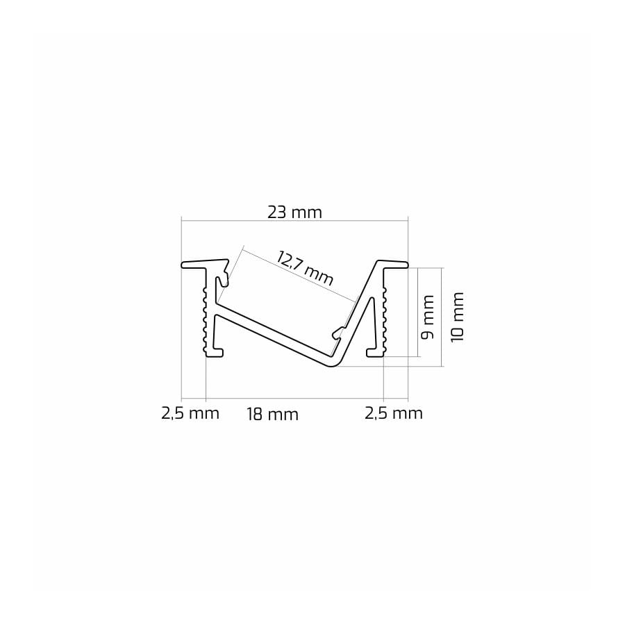 Profil Zenoline o długości 2 metrów jest wykonany z wysokiej jakości anodowanego aluminium. Można w nim zastosować taśmę LED o maksymalnej szerokości 10mm. Produkt montuje się do wpustu, czyli do odpowiednio wykonanego otworu lub frezu w powierzchni montażowej, np. w płycie meblowej. Głębokość frezowania to 10-11mm.