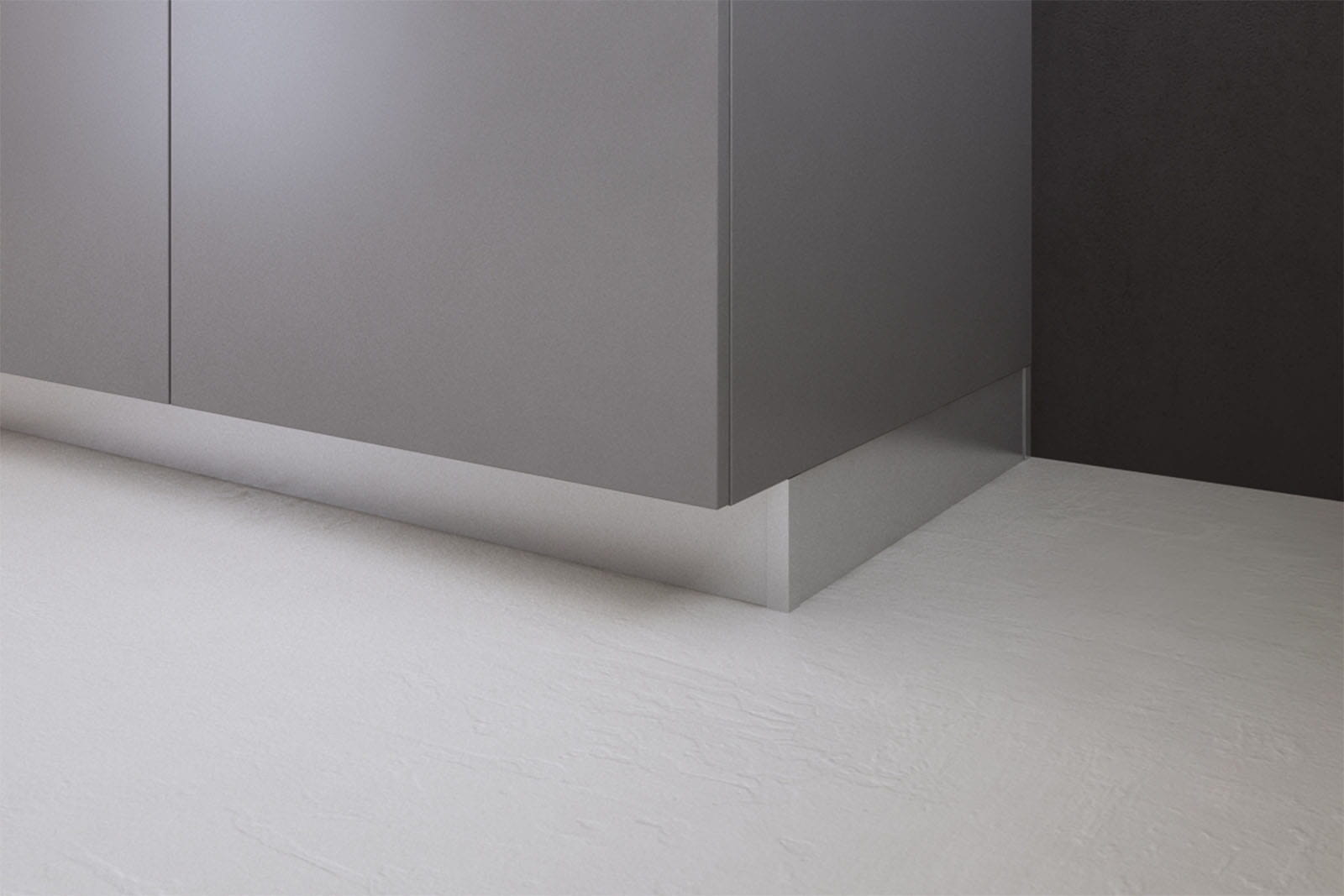 Subtelne aluminiowe profile cokołu firmy ZOBAL, pozwalają na zasłonięcie nóżek meblowych poprzez zamontowanie ich w dolnej części szafki podblatowej.