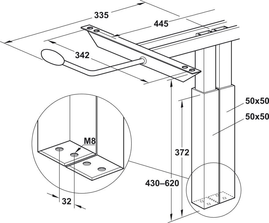 Podnośnik kolumnowy podwójny, siła podnoszenia 20 kg, Häfele 638.50.551