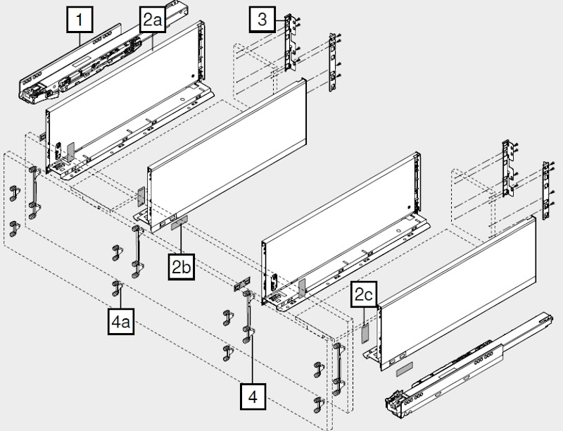 Stalowe boki szuflady z zaślepkami - 2 komplety