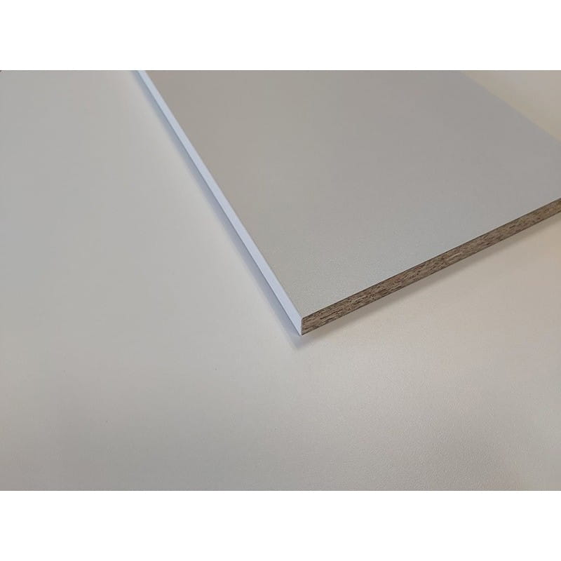 Formatka jest oklejona obrzeżem z jednej strony w kolorze białym z drugiej w kolorze szarym.