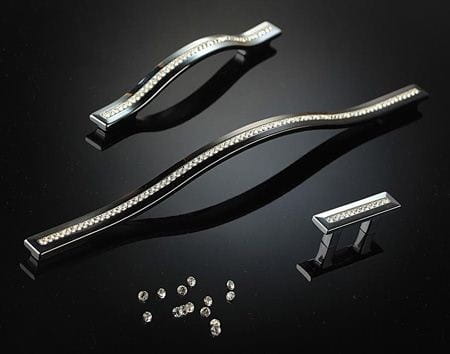 Uchwyt meblowy wykonany z wysokiej jakości stopu cynku i aluminium tzw. ZNAL z aplikacją ze szkła kryształowego.