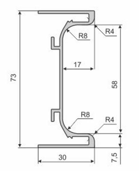 Subtelny aluminiowy System bezuchwytowy firmy ZOBAL, pozwalający na zastosowanie frontów nie wymagających uchwytów.