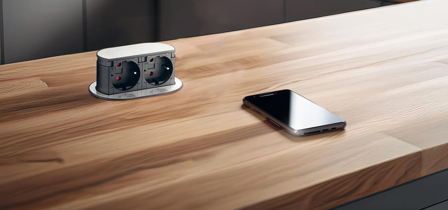 • 1 gniazdo CEE z uziemieniem, 1x USB S, 1xUSB C, 1x indukcja