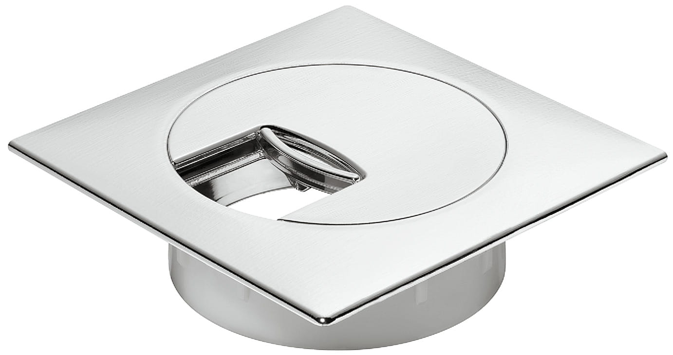 Przelotka kablowa, kwadratowa 100 x 100 mm, mocowana w otworze Ø 80 mm, chrom Häfele 631.07.202
