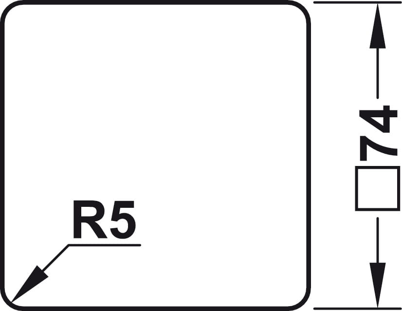 Wymiary otworu montażowego: 74 mm x 74 mm.