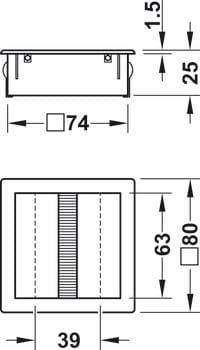 Przelotka kablowa, kwadratowa 80 x 80 mm, srebrna Häfele 631.52.920