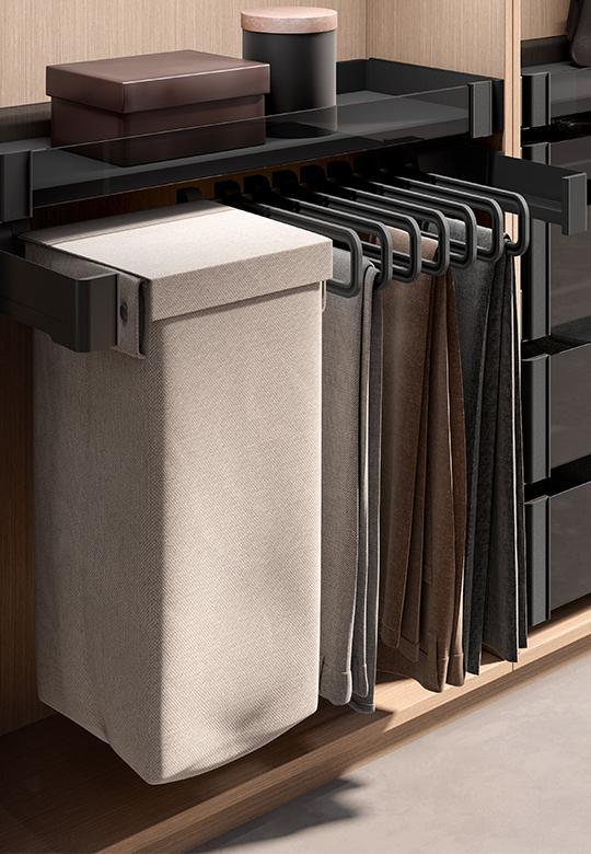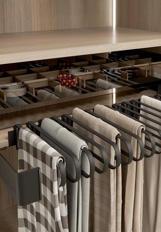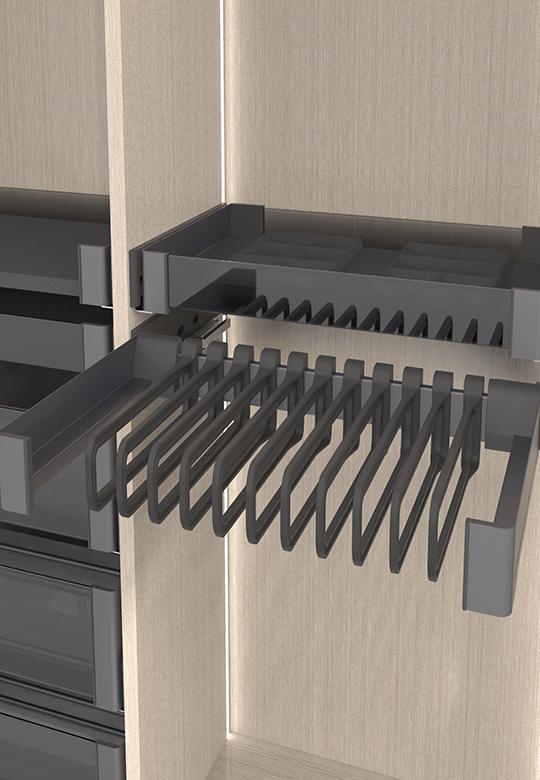 Organizery Conero Set to szuflady zaprojektowane tak, aby były funkcjonalne w codziennym użytkowaniu. Zamontowane w dostępnym miejscu są podręczne i wygodnie się z nich korzysta. Conero Set mieści się między ścianami szafki i jest odpowiedni do montażu w szafach, garderobach lub meblościankach.